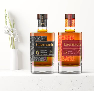 To showcase Cask Creative's unrivalled expertise, we undertook a brief to craft branding for Caernach Single malt scotch whisky — delivering an exclusive, terroir-driven spirit prized by collectors and connoisseurs. Elegant, contemporary brand identity marries with tasting notes focused label design to create a distinctive series of expressions.