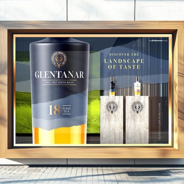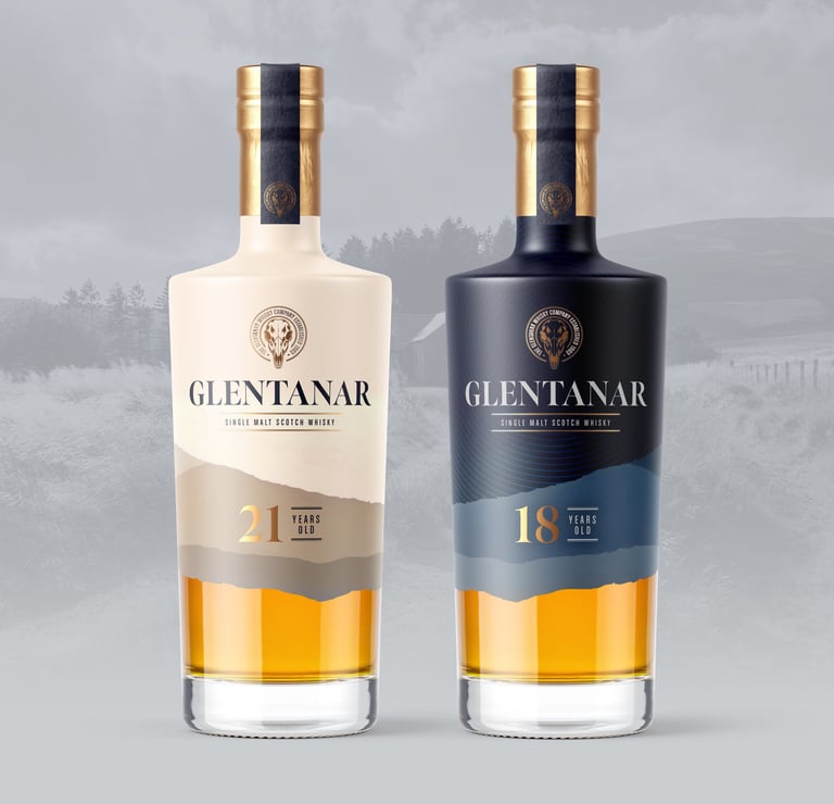 Introducing a branding project for Glentanar Single Malt Scotch Whisky. A celebration of the breathtaking mountain ranges and vibrant wildlife that cradle the distillery. The design embraces the essence of Glentanar's unique terroir, integrating rich earthy tones and textured visuals.